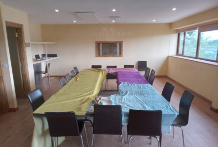 Teach Tui offers a 50m² conference room and meeting space. This comfortably holds 20 people. The venue is wheelchair accessible. We have a fully equipped kitchen, where your group can brew their own coffee and teas. Our facility includes flasks and boilers to enhance the overall comfort of your stay. In-house catering is available on request with food sourced from our Síolta Chroí farm when possible. You are also welcome to source or cook your own if preferred.